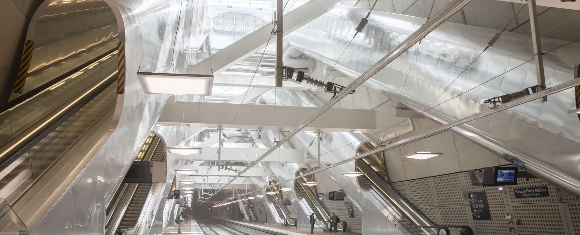 The Porte Eole station is a new facility planned for the 2024 Olympic Games and required for the extension of the RER line E to the west of Paris. A complex structure by nature, the station is organized around a 28 m by 150 m open-air trench. It is topped, to the right of the Palais des Congrès forecourt, by an accessible glass floor approximately 140 m long and 10 m wide.