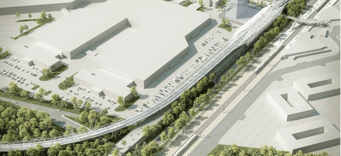 The viaduct carrying the tracks and trains runs directly through the station, requiring the aerodynamic effects of passing trains to be taken into account. The studies also included the dynamic analysis of the footbridges and the design of the dampers.