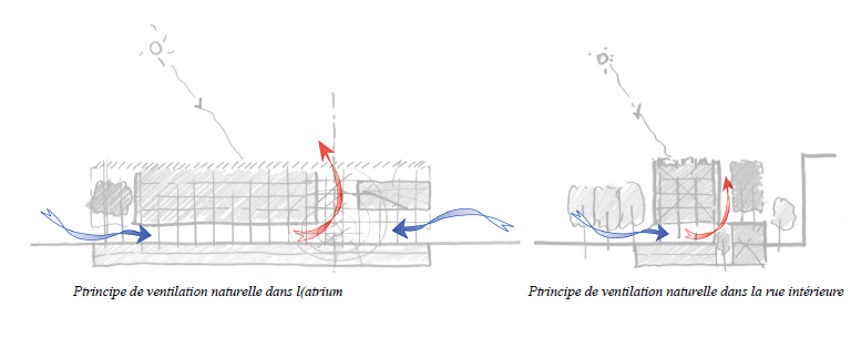 - Des verrières acier qui intègrent des occultations extérieures fixes et des ouvrants pour la ventilation naturelle et pour le désenfumage.