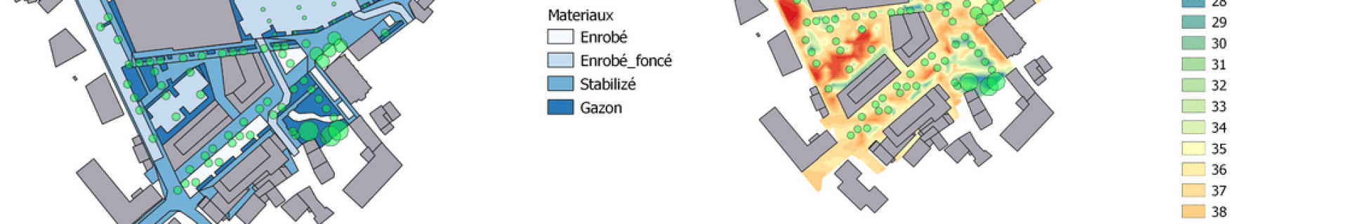 - avec des beaux rendus et des données en température de surface afin de comparer le projet et l’existant ou différentes propositions de projets : cartographie